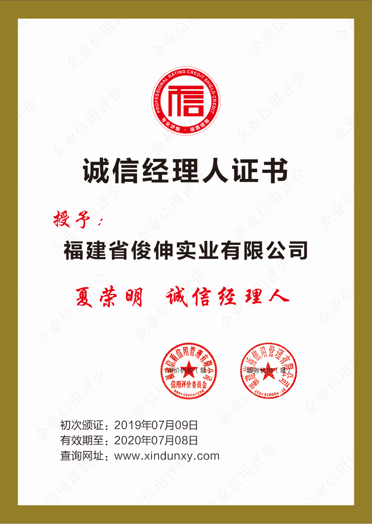 誠(chéng)信經(jīng)理人證書