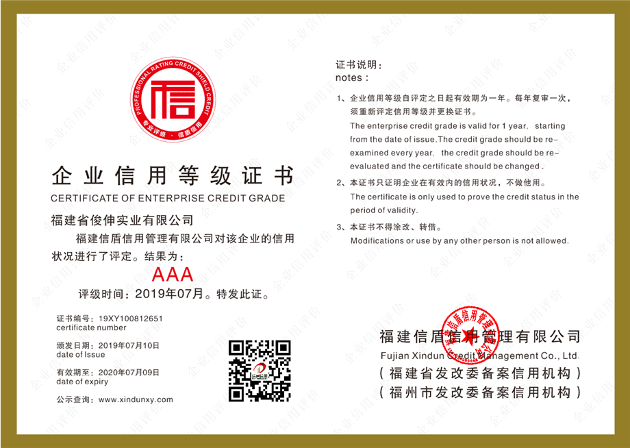 企業(yè)信用等級(jí)證書